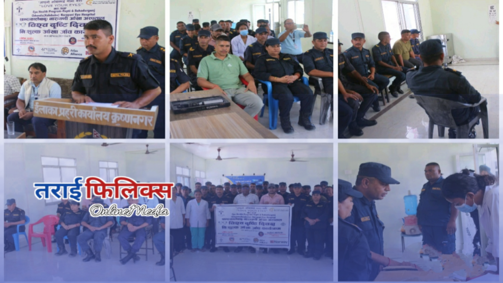 इलाका प्रहरी कार्यालय कृष्णानगरको आयोजना तथा नेपाल नेत्रज्योति संघ आँखा स्वास्थ्य कार्यक्रम राप्ती तथा बहादुरगंज छन्द (कालेबाबु) – नारायणी आँखा अस्पतालको सहयोगमा इलाका प्रहरी कार्यालय कृष्णानगर र सो मताहतमा रहेका नेपाल प्रहरी हरूको निःशुल्क आंखा चेक जांच गरिएको छ।