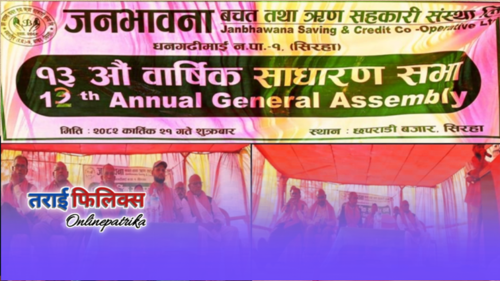 शम्भु चौधरी लहान, २२ कार्तिक । जनभावना बचत तथा ऋण सहकारी संस्था लिमिटेड,धनगढीमाई नगरपालिका १ सिरहाको १३औं वार्षिक साधारण सभा शुक्रबार भव्य र सभ्य तरिकाले सम्पन्न भएको छ।