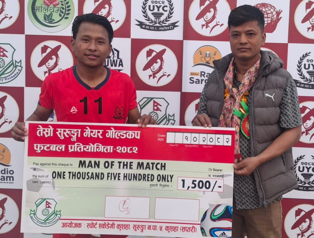 गोर्खा बुर्बरीका सह प्रायोजन रहेका सुरुङा मेयर गोल्डकपको प्रथम रासी रु ११०००० र दोस्रो रासी रु ७५००० राखिऐको छ। आज भएको खेलमा स्पोर्ट्स ऐकेडमि कुशाहा सप्तरी र बर्दीबास महोत्तरी बिच खेल भएको थियो।खेल ३५/३५ मिनेट रहेको थियो खेलको मुख्य रेफ्री मोहन चौधरी रहेको छ। खेलको २१ मिनेटमा बर्दीबास महोत्तरीले १ गोल गरि अग्रता लिएको थियो मध्यान्तरको ५ मिनेट अगाडि स्पोर्ट्स ऐकेडमी कुशहाले गोल फर्काइ दुबै टिम बराबर भएको थियो।