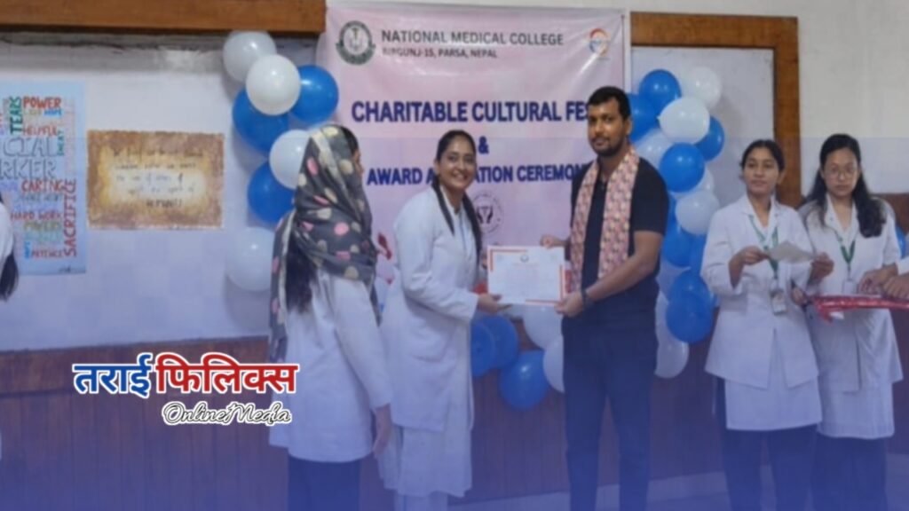वीरगञ्ज ७ असोज । नेशनल मेडिकल कलेज तथा शिक्षण अस्पतालमा “Charitable Cultural Fest & Award Affiliation Ceremony” भव्यतापूर्वक सम्पन्न भएको छ। कार्यक्रमको उद्देश्य चिकित्सा शिक्षा मात्र नभई समाजसेवा, सिर्जनात्मकता र नेतृत्वतालाई प्रोत्साहन गर्ने रहेको आयोजकले जानकारी दिएका छन्।