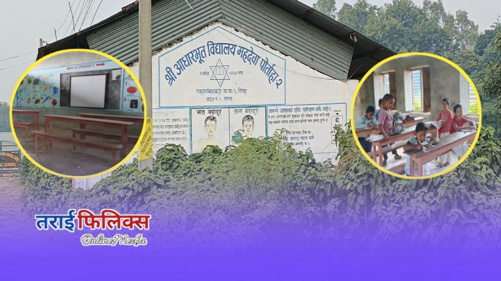 महदेवा पोर्ताहा आ.बि. को अवस्था जरजर,६ जना विद्यार्थीमा ३ जना शिक्षक