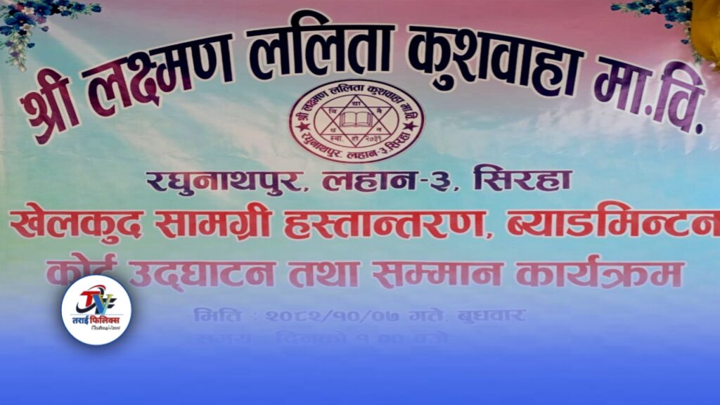 चन्द्र कान्त चौधरी लहान माघ ७ । : लहान नगरपालिका–३ स्थित श्री लक्ष्मण ललिता कुशवाहा माध्यमिक विद्यालय, रघुनाथपुर मा आज खेलकुद सामग्री हस्तान्तरण, ब्याडमिन्टन कोर्ट उद्घाटन तथा वडा कार्यालय लहान–३ बाट उपलब्ध गराइएको थप खेलकुद सामग्री हस्तान्तरण कार्यक्रम सम्पन्न भएको छ।
