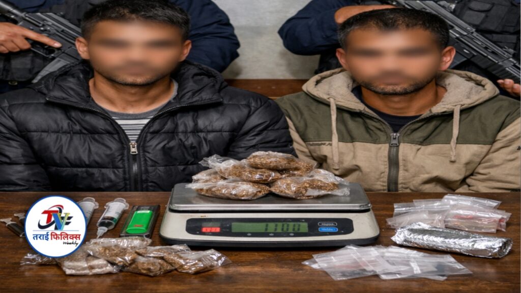 पुर्व-पश्चिम लोकमार्ग सडक छेउमा लागुऔषध बिक्री वितरण भईरहेको छ भने गोप्य सूचनाको आधरमा इलाका प्रहरी कार्यालय ‘गोलबजार सिरहा र लागुऔषध नियन्त्रण न्युरो शाखा कार्यालय गोलबजार सिरहाबाट खटिएको संयुक्त प्रहरी टोलिले निपाने स्थितमा रहेको मन्दिर छेउबाट जिल्ला सिरहा गोलबजार न.पा.वडा नं.०५ बस्ने वर्ष २५ को अनिल चौधरीलाई नियन्त्रणमा लिई निजको रितपुर्वक शरिर तलासी गर्दा निजले लगाएको कालो रंगको ज्याकेटको अगाडीको बाँयापट्टीको माथिल्लो गोजी भित्रबाट खैरो हिरोईन जस्तो देखिन पदार्थ गुलाबी रंगको २० वटा पोका प्लाष्टिक बाहेक तौल गर्दा १ ग्राम (एक ग्राम) फेला परेकोले निजलाई निन्त्रणमा लिई इलाका प्रहरी कार्यालय गोलबजार सिरहामा ल्याई सोधपुछ गर्दा ऐ.ऐ.बस्ने अन्दाजी वर्ष २३ को बलिराम महतोले मलाई बेच्नको लागि दिएको र निज बलिराम महतो हाल जिल्ला सिरहा लहान नगरपालिका वडा नं.०१ भाईरलबाबा टोल स्थित आफ्नो ससुराली घर बसी लागुऔषध खैरो हिरोईन बेच्नको लागि पोकाहरू बनाईरहेको भनि खूल्न आएको हुँदा आवश्यक समन्वय गरी निज अनिल चौधरीलाई साथमा लिई निज बलिराम महतो बस्ने घरको कोठामा ऐ, ३:२० बजेको समयमा रीतपर्वक प्रवेश गरी घर खानतलासी गर्दा घर भित्र रहेको दराज माथि लुकाई छिपाई राखेको कालो प्लाष्टिकको पोका भित्र खैरो हिरोईन जस्तो देखिने लागुऔषध गुलाबी रंगको १६३ वटा पोका प्लाष्टिक बाहेक तौल गर्दा १०.२५० ग्राम र निजले लगाएको पाईन्टको गोजीबाट नेपाली नगद र. २०.३१०/-. OPP0 कम्पनीको मोबाइल थान., चरोट ५ थान, लाईटर २ थान र ब्लेडका टुक्रा २ थान समेत फेला परेकोले दुबै जना सहित जम्मा ११ ग्राम २५० मिलिग्राम खैरो हिरोईन जस्तो देखिने पदार्थ बरामद गरी निज बलिराम महतो र अनिल चौधरी लाई नियन्त्रणमा लिई इलाका प्रहरी कार्यलाय गोलबजार सिरहामा ल्याइ थप अनुसन्धान कार्य भइरहेको जिप्रका सिरहाले जनाएको छ।