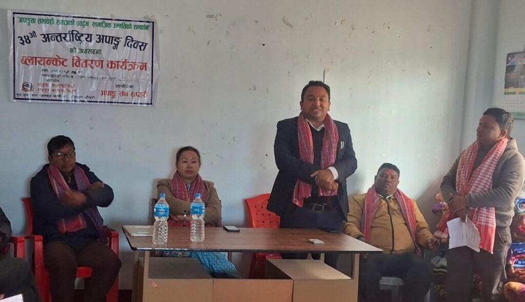 ३४ औं अन्तर्राष्ट्रिय अपांग दिवसको अवसरमा ब्लायन्केट बितरण कार्यक्रम सम्पन्न ।